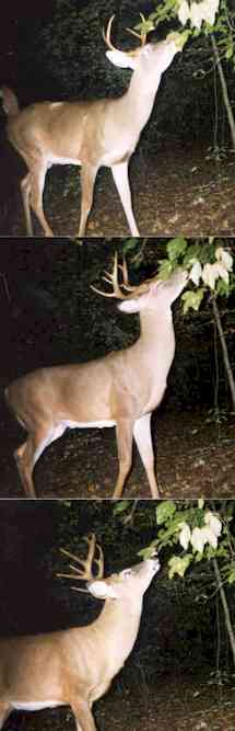 Brad also forwarded the photos shown below. These pictures were taken on a summer night in Georgia. Brad says these bucks are 1.5 years old, 2.5 years old, and the bottom buck is 3.5 years old.