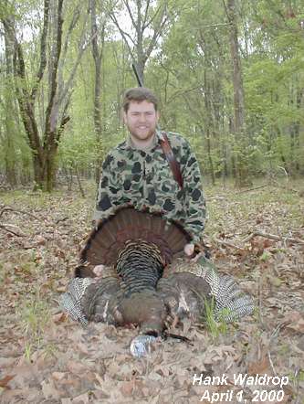 We would like to congratulate a few local outdoorsmen. Don Lauderdale, who helps me guide each year on the W. A. Hunt, recently won the 2000 Alabama State Turkey Calling Championship, held in Jackson, Alabama. That's quite an accomplishment. Here's Don and Hank with the bird from the weekend's hunt.