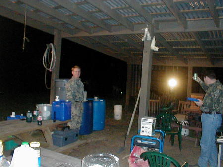 We entertained a few guests at the cabin on Saturday night with a fine meal of boiled shrimp and crabs, brought fresh from Louisiana by Todd.  On Friday night we had an interesting visitor at the camp.  Kevin Matthews joined Will and I for supper (hobo dinners cooked on the grill)  and just as we were finishing up, along comes a doe.  She was feeding on acorns there in the outer reaches of our lantern light.  She fed to within 15 steps of us as we stood in amazement.  I was able to walk over to my truck and retrieve my camera for the photo that you see below.   She fed along for quite sometime, paying us absolutely no attention.  It is amazing how calm the deer are at night.  This is not the first time such as happened to us.