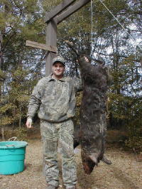Friday night was cool and the day began Saturday in similar fashion.  By afternoon the temperature had warmed into the 70's and by Sunday it reached 83.  That's pretty hot for deer hunting.  Nevertheless, we took a total of four does.  Will passed on a nice 9 point that he said just wasn't quite a shooter yet.  I passed on a good 8 point (16" spread and nice tines) that just looked like he needed another year to be something real special.  We hunted the acorns and that's where we found deer.  The only hog spotted the entire weekend was seen by me late Sunday evening, a boar that I would guess weighted 150 to 200 pounds.  He didn't get quite close enough for a shot.