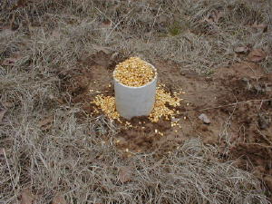 The hog traps did no good this weekend.  It seems that some deer are feeding on the soured corn but no hogs have come to the trap, though plenty of fresh sign exists in the area.  I moved the game camera to watch over one of the traps and to take the remainder of the roll of pictures. I'll pick it up this weekend and will definitely have that roll of film ready for next week.
