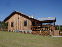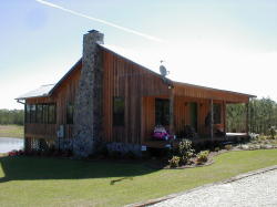 This past weekend I attended the 3rd Annual Wiregrass Turkey Rodeo.  No, this was not a riding and roping affair.  My college buddy Judd Lisenby hosts this hunt each year.  We had a total of 10 hunters.  The five hunters that did not have property to hunt teamed with the five that did, via a drawing.  The teams competed for the best turkey, scored using the NWTF scoring method.  Our host, Judd and his partner Dale Armstrong won the event.  A total of 3 turkeys were killed.  My team had tough luck, hearing only a few gobbles on a piece of property that was eaten up with fresh gobbler tracks.  I did have the opportunity to stay at Judd's new cabin overlooking a 7-acre lake that has just been completed.  I have some photos of that cabin shown below.  It may give you some ideas for one of your own.