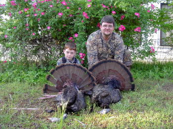 I want to share a couple of pictures sent to me during the season.  The first is Hill Robinson of Mobile and a Wilcox County gobbler he got early in the season.  The second photo is father and son duo Parrish Pugh and Parrish Jr. of Thomaston.  Thanks for sharing these pictures with us.