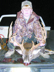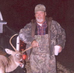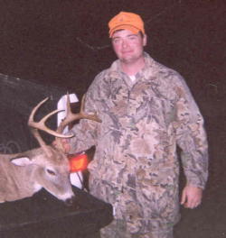 Bud Meadows and his 12 pt from 11/08/03 believed to score in the 160-170 B&C range.  This deer was taken in Illinois by one of our regular readers and fellow Wilcox County hunters.