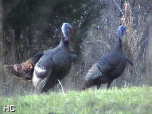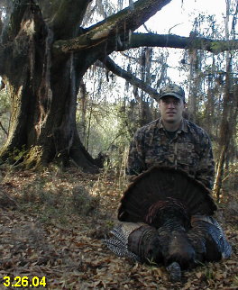 Next Sat., I did as you & got out the shotgun but we were hunting right here in Florida. I took my friend, who has never hunted turkey. He was to be the shooter & me the caller. We got in the woods just in time & one was gobbling on the roost. We set up & he immediately responded but again we had some hens that were close. He gobbled repeatedly & finally we heard him pitch down along with several other birds (we were very close). I called & he answered but so did the hens & as it turns out 2 jakes as well. They all put on quite a show, he was chasing hens strutting & gobbling but at a distance of 50-60 yds. & they were staying put. Finally after about 30 min. the courtship died down & one of the hens & the 2 jakes started our way. The big bird would come our way but always went back to the other hens even though he wanted the other hen as well. The jakes came up to us & eyeballed us pretty good but didn't bust us from about 20 yds. The big bird finally came towards us but again stayed just out of range. All this probably took place over an hour's time or longer. Finally the thrill was gone & they all wandered out of the area. The wind got up & we could not relocate them or any others, but a great show nonetheless.