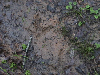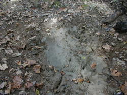 I began my long walk back to the truck, passing through Spooky's favorite pine plantation.  It was there that I looked down to see fresh gobbler tracks in the muddy road.  I could not have been more than 30 minutes behind the maker of these tracks.