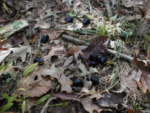 Hog droppings.  These from a small hog but nevertheless a telltale sign of swine.  When you see dozens of dropping piles in and amongst the big overcup acorns, you quickly know where the hogs are feeding heavily.