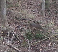 This picture was taken with the video camera.  This is the doe I shot on Saturday afternoon.  She was feeding towards the big water oak I was hunting.  She was standing in this exact stance when I zipped a Muzzy tipped arrow through her vitals from a range of 10 yards.