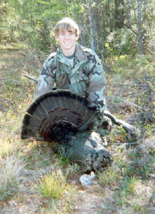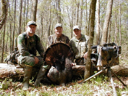 Last Saturday the ice was broken with a double & a first kill for my 14 yr. old son. We finally got to my lease in Butler Cty. 3 weeks into the season. It is approx. 10000 acres & basically a pine tree farm but there are plenty of turkeys. We started out in a place where I had seen some gobblers during deer season & sure enough one gobbled at first light. We had moved through a couple hundred yards of cutover to reach the treeline when suddenly I realized that I had left my fanny pack with my turkey calls in the car. So, I leave my gun with my son, haul it back to the car uphill all the way without having a heart attack, get my pack and run back to the wood line, this is at first light mind you.