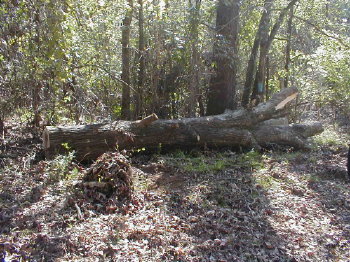 Our two biggest obstacles involved large oaks blown across the road.  We could only cut our way around it.  The other one---a 50 year old tree---we were able to saw in half and hook two tractors to the trunk and move it from the road.