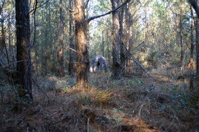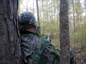 We stopped in the edge of the younger pines and decided to wait out the fog in silence, not disturbing the birds in hopes they would begin gobbling once the fog lifted.  But the morning dragged on and we heard not a single gobble.  We eventually moved into the bigger pines and set up for several hours of yelping, to no avail.