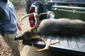 Richard Manry, of Birmingham, took this fine buck pictured below on the second weekend of the season while hunting in south Dallas County.  Though it was hot and Richard said he saw very little during the weekend of hunting, he did get the best of this buck and also a doe on the same hunt.  It goes to show you that even when the conditions are not perfect you can have a lot of success.  You can't kill them at home or back at the camp.  Congrats on the buck, Richard, and thanks for sharing with the Horn Swamp Online!