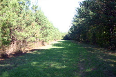 The burned pines and the fire lane, where the gobbler encounter occurred.