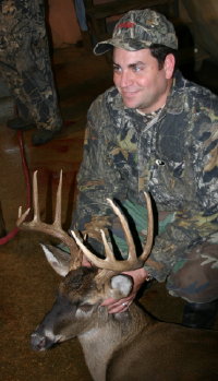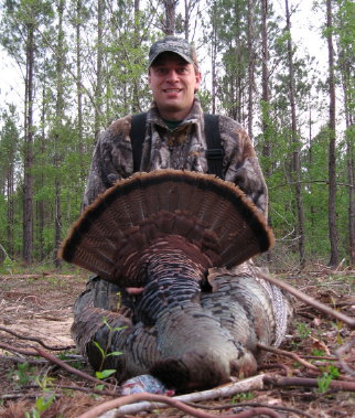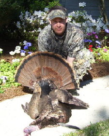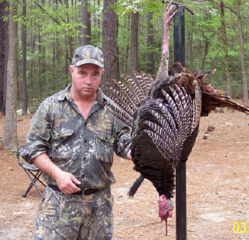 Dewayne, one of our regular readers from Louisiana, writes "This is a turkey I shot on 3/25/07 in Kisatchie National Forest. The spurs were 1 inch long I figure a 3 year old bird. He did not weigh but 16 lbs. The beard was 7.5 inches long.  Don't ask me why I'm not smiling. I guess he wore me down."