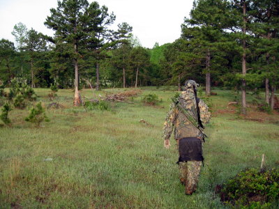 After hunting hard for three and a half days trying to get a gobbler kill on film, I stayed away from the woods for three days.  I returned last Thursday in pursuit of the two birds we had tangled with for much of the NWTF hunt.  I found them right back in the spot we first hunted them seven days prior.