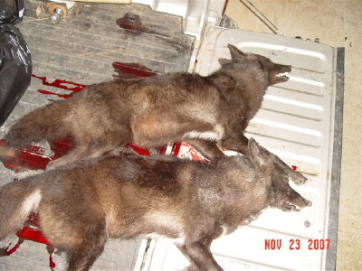 Jess Martin shot these two mostly black coyotes in Monroe County.