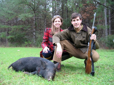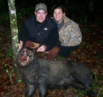 John and Ashley Turner pose with a Horn Swamp hog that John