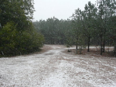 Raindrops began to fall and knowing one of two small, but strong storms were still to the southwest of us, we decided to wait it out at the truck. The rain quit soon after daybreak and we walked out into the pines to wait for a gobble. Then another storm approached, with lightning, that sent us scrambling back to the truck and then to the cabin. This one brought some hard rain.