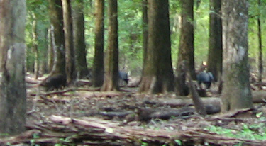 I got on the golf cart and circled the property. The wind was calm and it was a gorgeous day. Though the woods have thickened with new growth a bird can still be heard quite a distance in most areas, especially on those calm days. By 8:30 I had made the loop and returned to the shed where I sometimes leave the cart. I yelped once more from there and got an answer. I quickly headed toward the bird. A answer at this time of the morning from a bird that I don't believe gobbled at daybreak was a good sign.