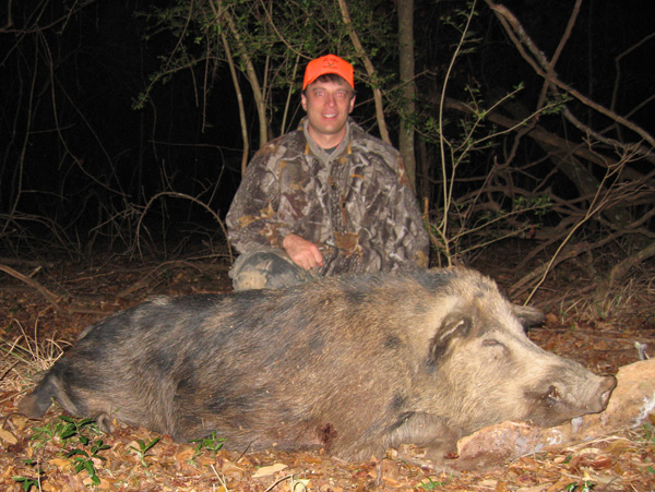 My two kills came on single boars that I jumped in thick cover and shot as they stood up from their beds. I killed both at less than fifteen yards. Both boars were in the neighborhood of 150 to 175 pounds each by my guess.