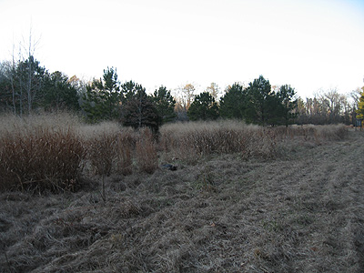 My first bird. The threesome came from across the small food plot that is seen in the background of the photo, into the pines. I shot him right where the photo was taken.