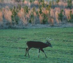 In the south-central section of Alabama, the Horn Swamp is blessed with quality herd of whitetail deer. In a horseshoe bend in the Alabama River, the Swamp provides many different habitats for deer. Young briar filled pine thickets , open fields, ten to twenty-five year old pine plantations, and old hardwood bottoms filled with great acorn producing trees all hold a good number of deer. A diversity of habitat is what makes the lands so popular for wildlife.