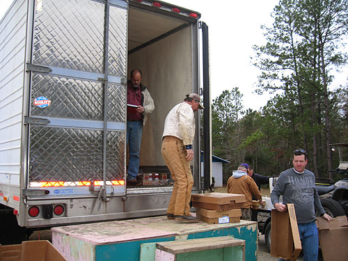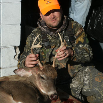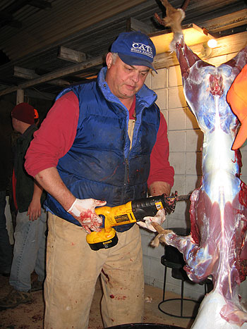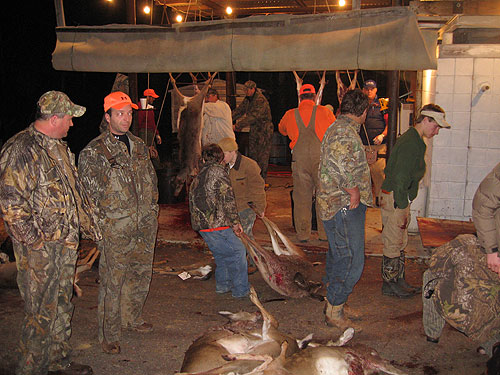 Bill and Kevin load out the deer on Sunday morning as hunters head for